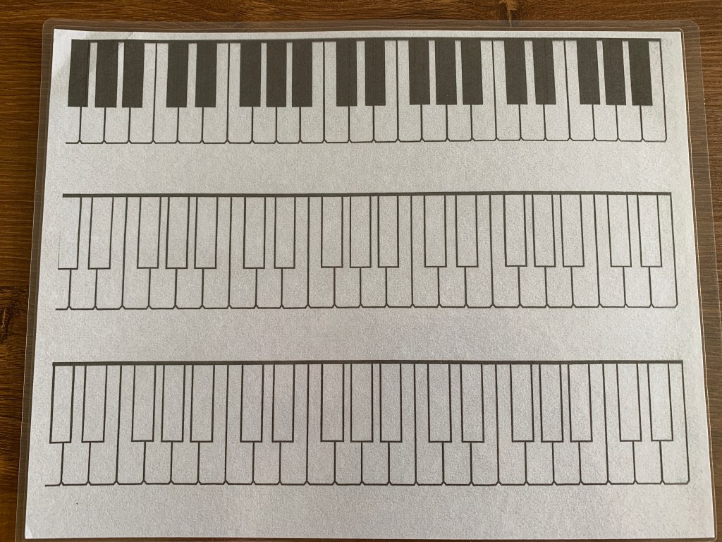 Since I have now starting teaching all my private lessons virutally, I knew I would need more visual aids and printables to use for my students. One of the things I thought would be especially helpful for my young piano students (and can be used with adults too) is a picture of a piano keyboard. So I printed off a page and laminated it (of course). And then I began to think of all the ways I could use it in the lessons, and if I was able to have my students print one off and laminate theirs, I began to think of all the ways they could use it at home! We could really have a lot of fun with this!