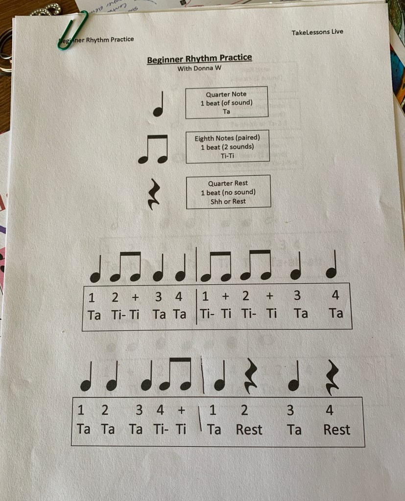 Each week I have hosted live group classes for adults and kids. Classes such as Beginner Rhythm Practice, 5 Finger Scales and Chords, and Composer Classics. The Beginner Rhythm Practice class has been one of the most successful classes so far as it reaches a variety of students of all ages and instruments. We learn about a few basic note types and practice some rhythm patterns for each one. We learn to use a metronome and use 2 different ways of counting. I have also recently included a Rhythm Class for Kids and an Intermediate Rhythm Practice class that is structured the same way.