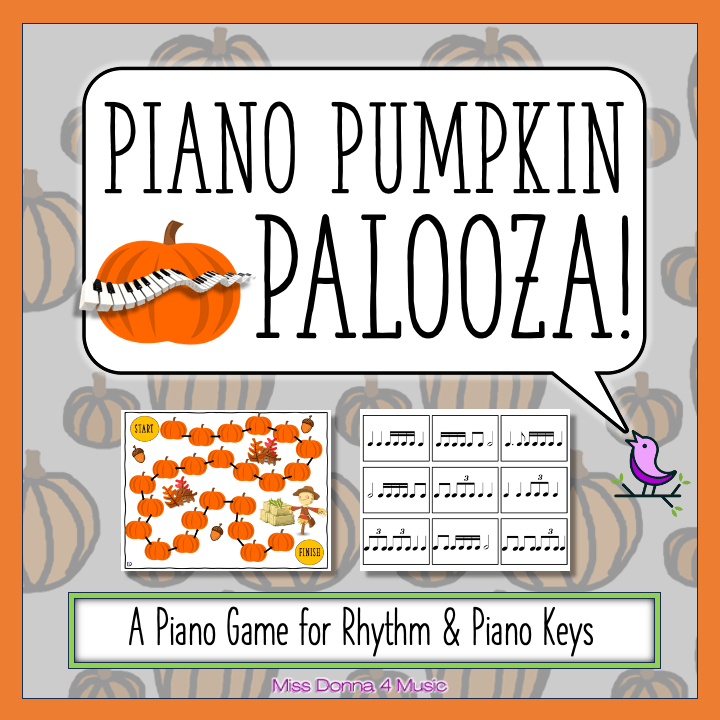Piano Pumpkin Palooza is a great fall game fore your piano students! It will help reinforce rhythm in several different time signatures and reinforce piano keys names at the same time.