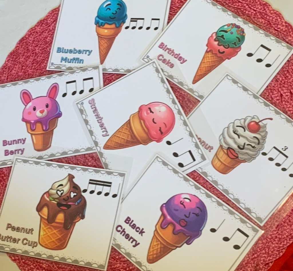 First, we did some matching and sang through some ice cream solfege patterns using an activity by Becca’s Music Room. Then we used my ice cream rhythm cards to do some rhythm composing. And we played ice cream 4 Corners with larger ice cream posters with some delicious rhythm flavor!