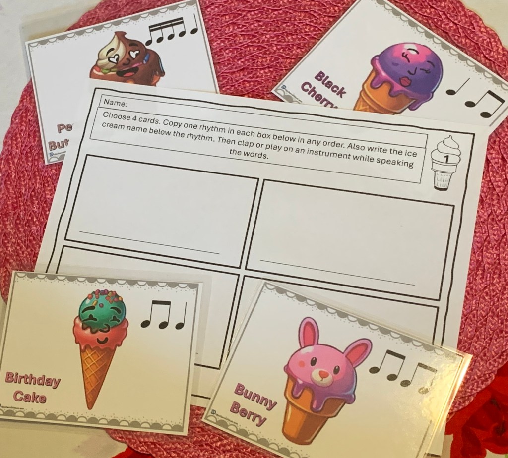 Also check out Ice Cream Rhythm Shop Music Math Activity where kids can practice some basic addition and subtraction math skills while also learning how many beats each note gets! And both Ice Cream Rhythm Shop products are now bundled together for your convenience!