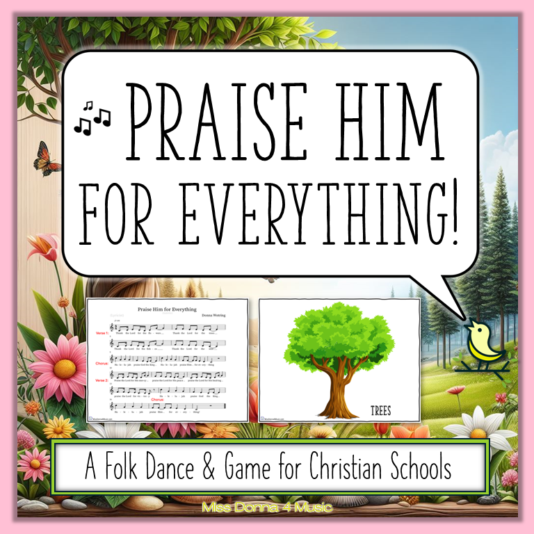 One of them, Little Red Sailboat, I created a resource for with all the instructions and dance steps along with teaching instructions for rhythm and steady beat. Resources for Little Mermaid Gal and Seashell Seashell are coming to my TPT store soon! And it you’re looking for a folk dance for Christian schools, I have Praise Him for Everything, an original song written by me that comes with a 4 Corners game as well.