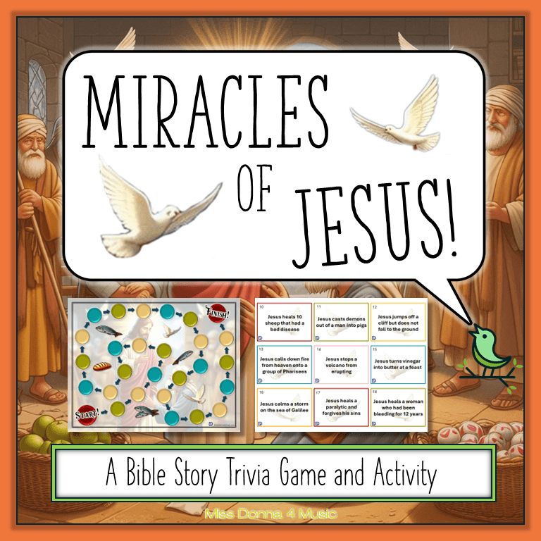 Did you know I create Bible games in addition to my music games? Creating Bible games for kids is a wonderful way to bring the stories and lessons of the Bible to life. In addition to being a music teacher, I also teach a “Sunday school” class of 5th & 6th graders. I say “Sunday school” but the class is on Wednesday nights. And keeping that age group engaged can sometimes be a challenge. SO after each lesson, we either do a fun worksheet or a game. I’ve been using my Bible games with this class and they have been having a blast!