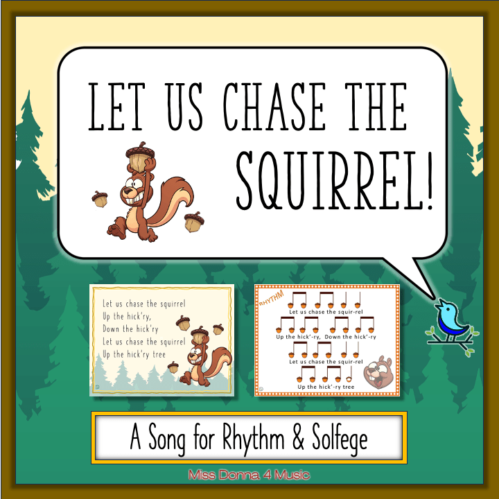 Here is another cute fall-themed song that you can do a lot of things with. You can have students practice steady beat vs. rhythm using quarter notes, eighth notes, and half notes. Or you can practice solfege singing using Do, Re, Mi, and So.