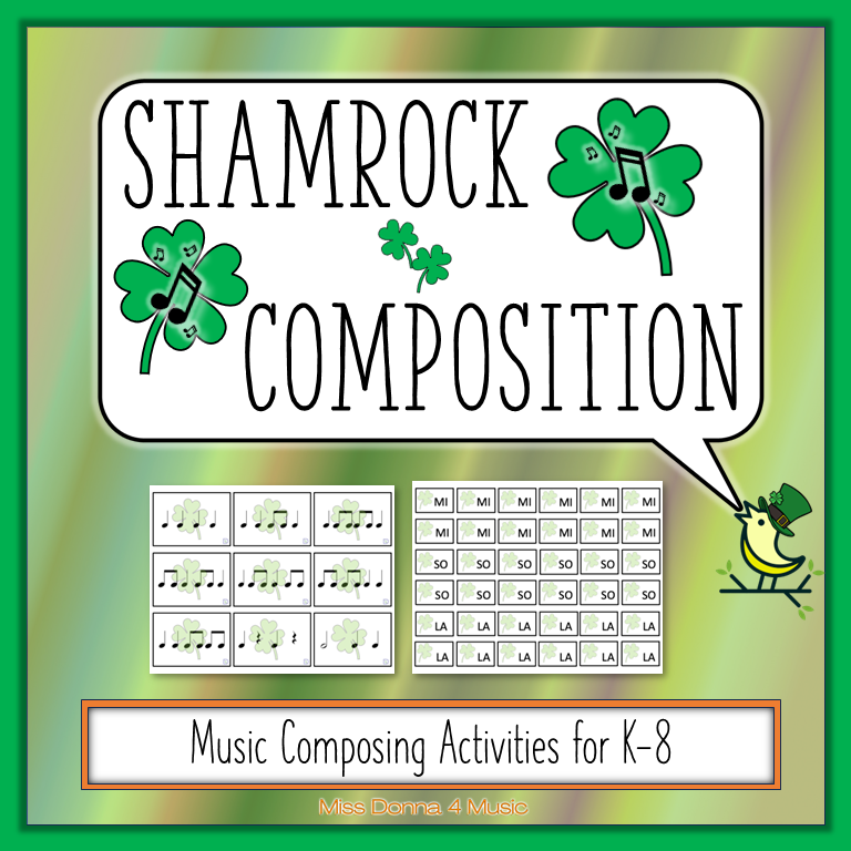 If you really want to focus on composing, check out Shamrock Composition! This resource has composing activities for rhythm and solfege, on and off the staff for all different levels from Kindergarten to 8th grade that will keep your kids busy, learning and having fun and being creative!